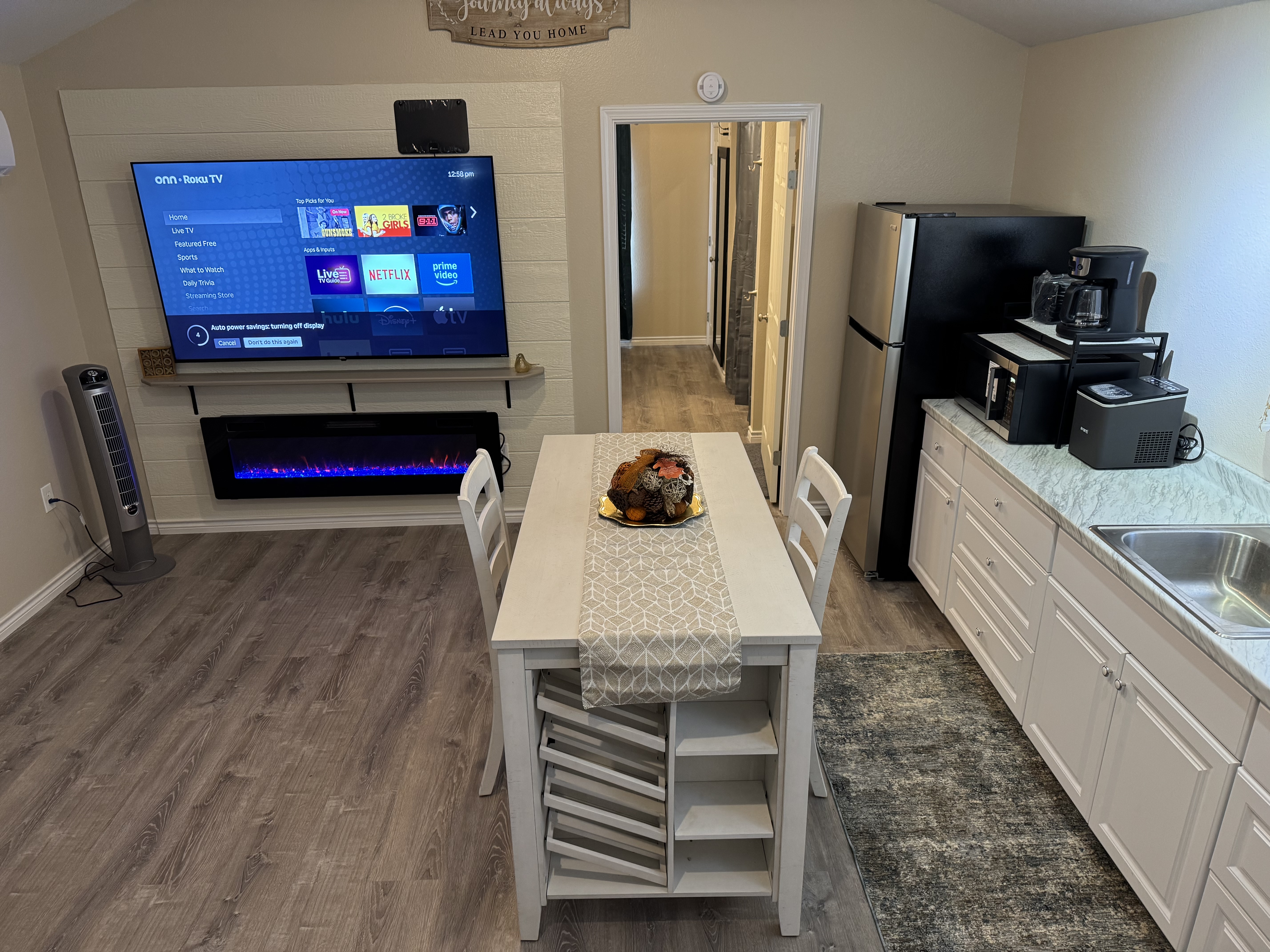 The Sheridan at Starlite Ranch (Driscoll – Unit A) Nestled in the quiet ranch landscape of the Driscoll area, the Sheridan offers a simple, comfortable, and peaceful place to truly settle in. Surrounded by wide South Texas skies, soft morning light, and steady breezes across the fields, this cabin is designed to be more than just a place to stay — it’s a place to rest, reset, and feel at ease. Thoughtfully built and easy to call home, the Sheridan Retreat provides a calm, dependable space for hard-working residents who value privacy, reliability, simplicity, and a welcoming retreat that feels distinctly their own.